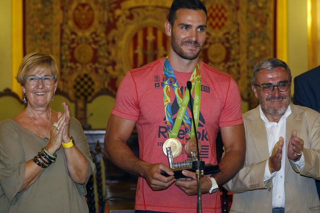 L’alcalde ha presidit la recepció que s’ha fet al Saló de Sessions de la Paeria, amb la presència de la Corporació Municipal i de diverses autoritats locals, com el representat territorial de l’esport Lleida, Joan Segura, i li ha lliurat com a obsequi una Seu Vella de Plata, afirmant que “és el metall que et faltava en tornar de Rio”. Prèviament, el piragüista olímpic ha signat al Llibre d’Honor de la Paeria i ha sortit al balcó per saludar els lleidatans que s’han aplegat davant la Paeria, sumant-se al reconeixement de la ciutat.
