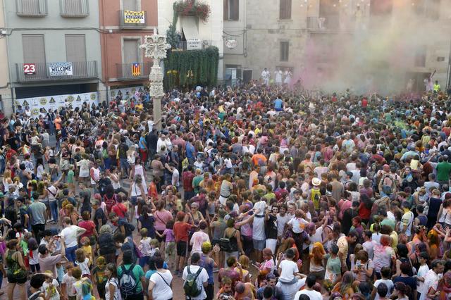 “The Colour of Time”, de la companyia francesa Artonik, ha donat el tret de sortida a FiraTàrrega 2016 i compta amb una àmplia trajectòria internacional que, a través de la dansa, el teatre i les arts visuals i a partir de la inspiració en la proximitat, els viatges i els espais públics construeix les seves creacions. L’espectacle s’inspira en el Holi Festival que se celebra a l’Índia amb l’arribada de la primavera. Amb una explosió de color, d’alegria en una desfilada coreografiada convida l’espectador a compartir un bany de pols de gulal i abraçades per canviar entre tots el color del firmament.