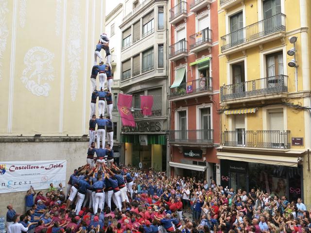 Per molt poc, el Castellers de Lleida no han aconseguit carregar el 4 de 8, castell que sí havien completat per primera vegada aquesta temporada fa just set dies a la Diada d’Emili Miró a Terrassa. Després d’un primer intent desmuntat, els bordeus han caigut quan l’anxaneta estava a punt de traspassar i coronar el castell. La colla s’ha refet de la llenya i ha aconseguit descarregar amb molta solvència el 5 de 7, la torre de 7 i el 3 de 7. Els Castellers han arrodonit l’actuació amb tres pilars de 4, un dels quals al balcó, que ha recollit el paer en cap de Lleida, Àngel Ros.