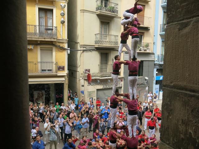 Els Capgrossos de Mataró ha realitzat l’actuació més destacada d’avui a la plaça de la Paeria, on han descarregat amb molta seguretat el 3 de 9 amb folre –la principal construcció que s’ha aixecat -, el 5 de 8, la torre de 8 amb folre, el pilar de 6 i un vano de 5.