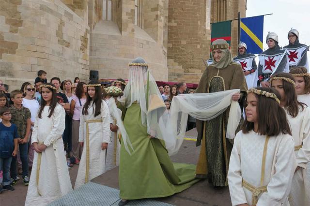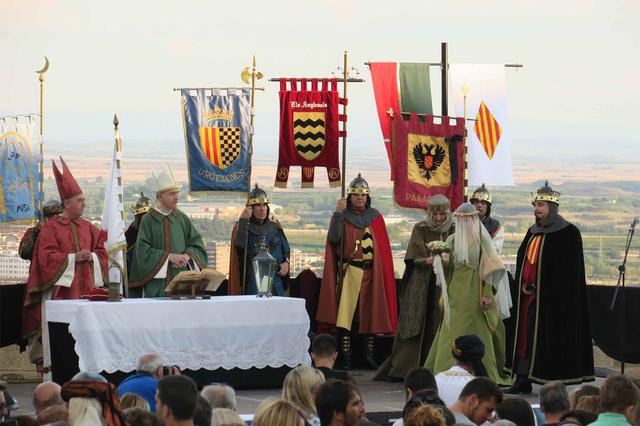 El Comte de Barcelona, Ramon Berenguer IV i la princesa aragonesa Peronella han donat el seu consentiment per unir-se en matrimoni davant l’atenta mirada dels de lleidatans que s’han apropat al lloc i que també han pogut passejar abans pel mercat medieval que té lloc al Baluard una hora abans. Al mercat s’hi han dut a terme activitats complementàries de falconeria, les Bruixes del Pont del Boc, entre d’altres.