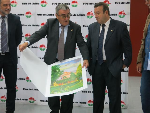 L'alcalde ha lliurat a la Federació la litografia de la Fira, una reproducció digital d’una obra original del prestigiós artista lleidatà Joaquín Ureña creada amb motiu de la 62a edició de la Fira Agrària de Sant Miquel. Es tracta d’una aquarel·la del Xalet dels Camps Elisis, edifici modernista situat en el parc on s’ubica el recinte de Fira de Lleida. La Institució firal lleidatana ha editat 150 exemplars numerats i firmats per l’artista, amb els quals s’obsequiarà al visitants destacats del certamen.