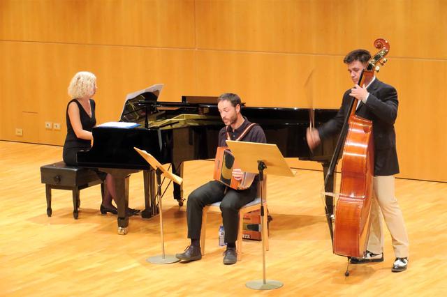 El Trio Belda ha estat l’encarregat d’obrir aquest vespre, a la Sala 2 de l’Auditori Municipal Enric Granados, el cicle de cambra de la temporada de tardor-hivern. Oksana Shymanska, al piano; Carles Belda, amb l’acordió diatònic, i David Esterri, al contrabaix, han ofert “Estudis cromàtics per a diatònic”, un repertori de cambra diferent que aplega el clàssic i la cultura tradicional, on s’han pogut escoltar tangos d’en Piazzola, cançons i danses d’en Mompou, revisions jazzístiques eslaves o peces pròpies fetes per a l’ocasió.