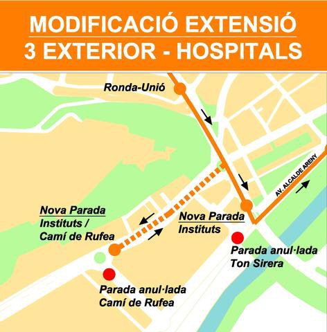 Les dues parades que hi havia en aquests punts es traslladen a les parades d’Instituts/Camí de Rufea (L2, ATM) i Instituts (L3). Els horaris no canvien i, per tant, seran els mateixos que els actuals.