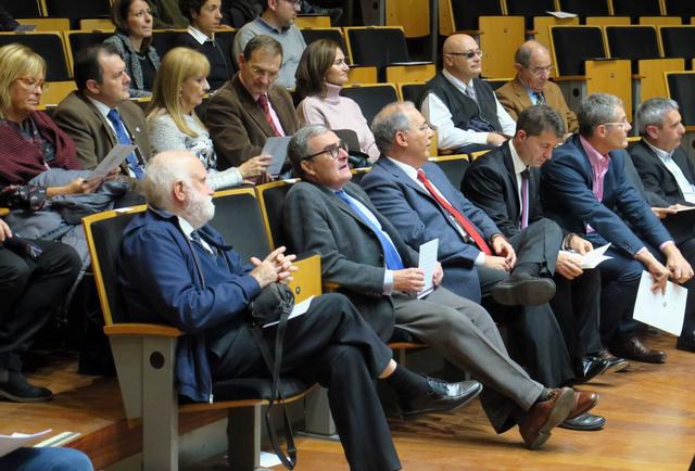 El paer en cap ha saludat als assistents i ha escoltat des de la primera fila, al costat de l’actual rector de la UdL, Roberto Fernández, i dels seus predecessors, Jaume Porta i Joan Viñas, la taula rodona de quatre directors que ha tingut l’EPS, Josep M. Miret, Carles Capdevila, Ferran Badia i l’actual, Francesc Giné.