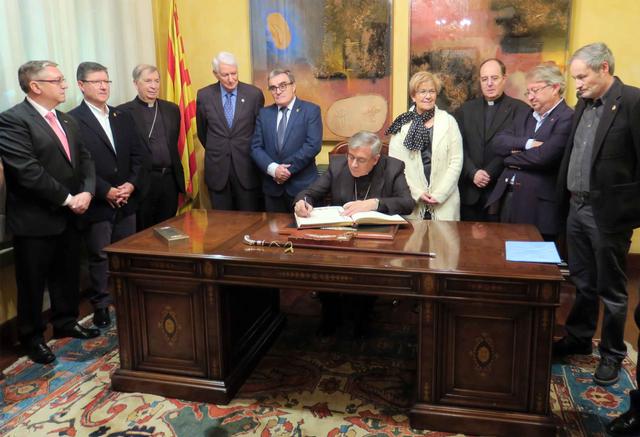 L’acte, al qual ha assistit el bisbe de Lleida, Mons. Salvador Giménez Valls, la tinent d’alcalde Montse Parra i els regidors Paco Cerdà, Daniel Rubio i Joan Vilella, ha començat després que el pare abat signés al llibre d’or de la Paeria, moment que ha aprofitat l’alcalde per fer-li el lliurament un exemplar del Llibre dels Usatges.