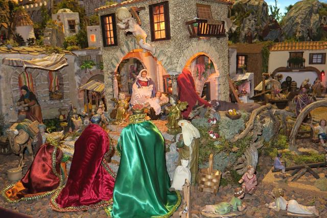 Virgilio del Olmo no només és l’autor del muntatge, sinó que també és el propietari. Cada any va incorporant alguna nova figura que construeix ell mateix o adquireix fins i tot fora de l’Estat espanyol. Enguany ha incorporat el Castell d’Herodes, que presideix tot el conjunt pessebrista, i ha renovat la capa dels Reis Mags. Aquest pessebre té unes dimensions de 14 metres d’amplada per 5 de fondària.