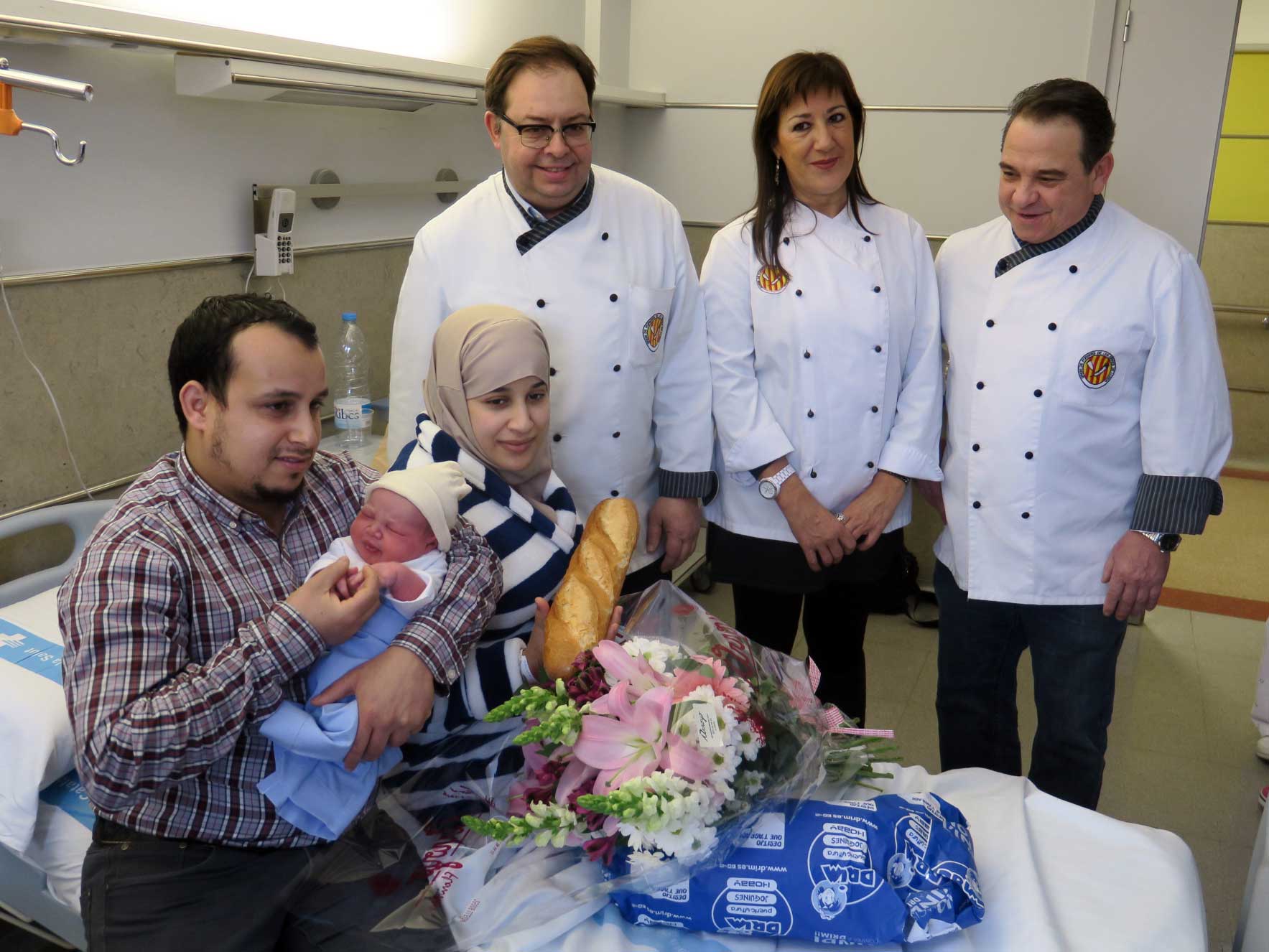 Acompanyant el tinent d’alcalde Rodamilans també hi havia una representació del Gremi de Forners de Lleida, que ha volgut mantenir la tradició i fer bona la dita que els nens que naixen venen amb un pa sota el braç. Per aquest motiu, han obsequiat als pares de l’Ouiam amb un any de pa gratis per la seva família, que els hi serà lliurat diàriament per un dels forns de Mollerussa, on resideixen.