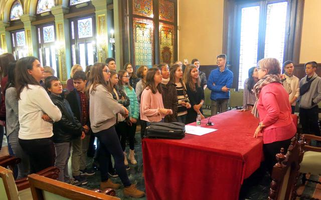 La tinent d’alcalde Montse Parra saluda 40 estudiants de Poznan, que estan realitzant un intercanvi escolar amb el Col·legi Episcopal