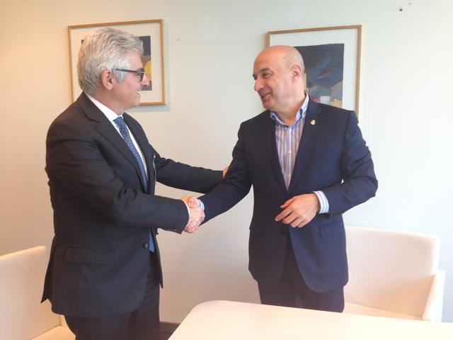 El tinent d’alcalde de Promoció de la Ciutat de l’Ajuntament de Lleida, Rafel Peris, i el director general de l’Associació AECOC, José Mª Bonmatí, han pres el compromís d’iniciar els contactes necessaris que permetin consolidar la realització del congrés de productes càrnics i elaborats de l’Associació AECOC, al Palau de Congressos de Lleida, en les properes edicions.