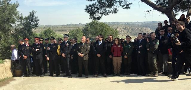 La regidora de Seguretat Ciutadana, Sara Mestres, i l’intendent en cap de la Guàrdia Urbana, Josep Ramon Ibarz, s’han afegit als familiars, companys i resta d’autoritats que han participat en aquest acte, on les famílies han reivindicat davant del president de la Generalitat, Carles Puigdemont, que es millorin les condicions de treball del cos d'agents rurals, ja que consideren que les víctimes estaven "desprotegides" en el moment del crim.