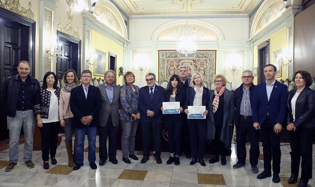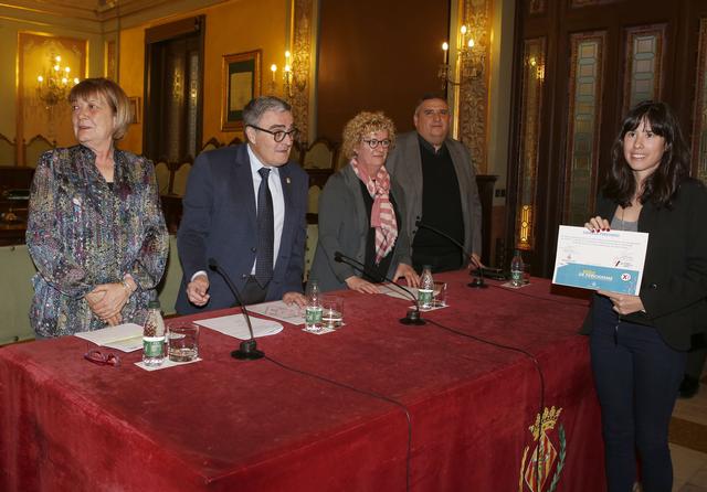 L’alcalde, acompanyat de la tinent d’alcalde i regidora de les Polítiques per a la Igualtat, Sara Mestres, ha lliurat els premis amb la degana del col·legi, Neus Bonet, i amb el president de l’entitat a Lleida, Rafa Gimena.