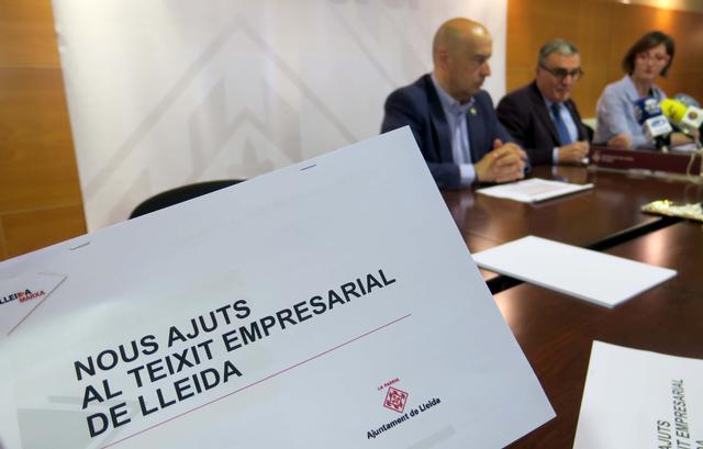 L’Ajuntament de Lleida ha presentat la nova línia d’ajuts al teixit empresarial que té com a objectiu principal la creació d’ocupació a la ciutat. El paer en cap, Àngel Ros, acompanyat del tinent d’alcalde i regidor de Promoció de la ciutat, de l’Ocupació i l’Emprenedoria, Rafael Peris, i de la portaveu del grup municipal de Ciutadans, Ángeles Ribes, ha explicat en què consisteix la nova política d’ajuts, que pretén donar un salt qualitatiu i ajudar els empresaris que puguin tirar endavant amb la seva activitat. Ros ha apuntat que aquesta nova línia s’ha elaborat basant-se en la proposta que va fer C’s, en el marc del pressupost d’aquest any, i que es va aprovar al Ple del mes de març.