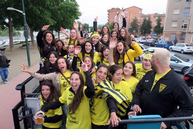 Tot seguit, els jugadors d’ambdós equips han pujat al bus turístic per participar en la rua pels carrers de Pardinyes, seguits per una caravana de cotxes dels aficionats, que feien sonar els clàxons al seu pas.