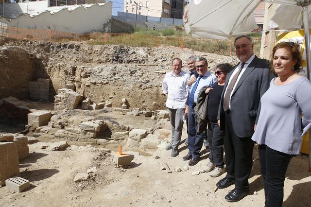Jusèp Boya visita les excavacions de l’antic barri de La Cuirassa, acompanyat de l’alcalde Àngel Ros