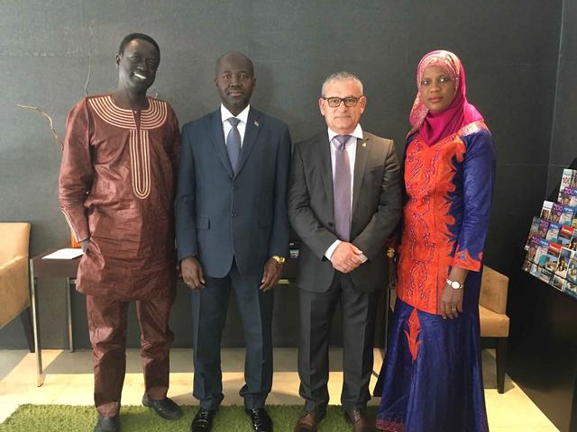 El tinent d’alcalde Joan Gómez saluda el diplomàtic que participa en la trobada organitzada per l’associació The Gambian River Unión