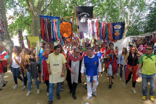 Avui, el darrer dia d’Aplec ha començat ben d’hora amb la cercavila de les colles que s’ha iniciat a l’avinguda Tarradellas. Les colles han desfilat dividides en dues rues diferents. Una s’ha dirigit al Pont de Príncep de Viana i l’altra al Pont de la Universitat. Les dues s’han trobat al Pont Vell, davant l’estàtua d’Indíbil i Mandoni, on ha tingut lloc la tradicional imposició d’escarapel·les. Després les colles han tornat als Camps Elisis per seguir amb les activitats de la darrera jornada d’Aplec.