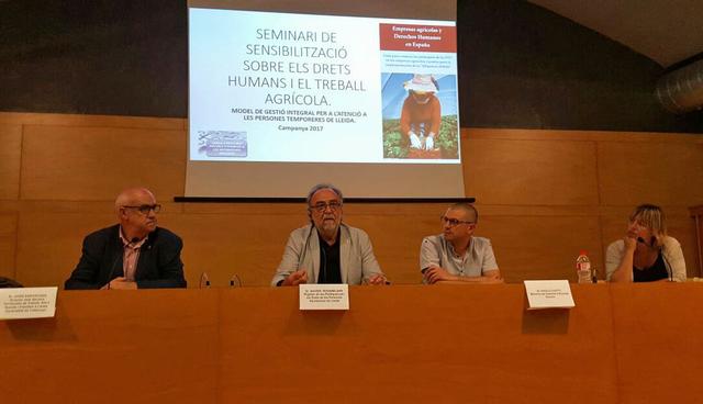 La Xarxa d’Entitats Socials d’Atenció a les Necessitats Bàsiques, de la qual forma part la Paeria, ha promogut el seminari de sensibilització sobre els drets humans i el treball agrícola, que s’ha fet avui amb la intervenció de Paolo Leotti, investigador i soci del Gabinet d’Estudis Socials (GES). El tinent d’alcalde i regidor de les Polítiques per als Drets de les Persones, Xavier Rodamilans, ha recordat el treball conjunt de les entitats iniciat el 2002 amb la Xarxa i com es van posar en marxa diferents serveis (dutxes, consigna, alimentació, etc.). En el marc del model de Gestió integral per a l’atenció a les persones temporeres de Lleida, Rodamilans ha assenyalat que l’any passat es va implantar aquest nou model de gestió integral, que va tenir un bon resultat i sense incidències. El projecte incidia especialment en tres àrees: la laboral, l’acollida i la convivència. Així, els objectius són els d’apoderar mitjançant la informació sobre els drets laborals, les obligacions, el conveni agrari, etc. als treballadors temporers i visibilitzarà la realitat d’aquest col·lectiu i dels empresaris agraris.