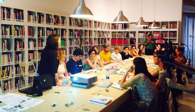 Els participants van treballar la forma de descobrir processos creatius d’arts visuals que fomentin el desenvolupament personal, l’autodeterminació i les relacions interpersonals. Es tractava d’aprendre estratègies de mediació cultural que puguin transformar els projectes culturals en experiències més inclusives i alhora indagar en les propostes d’art contemporani que ja treballen en processos col·laboratius.