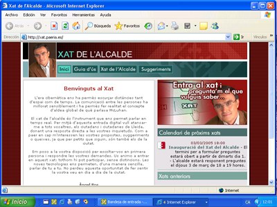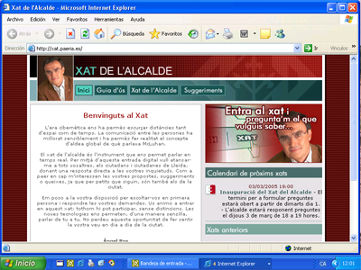 La posada en marxa del xat forma part d’un procés de renovació de la web de l’alcalde, un nou lloc a internet per mitjà del qual, el paer en cap saluda i presenta la ciutat a tota la comunitat internacional. La salutació es fa utilitzant mitjans multimèdia en quatre idiomes: català, castellà, angles i francès.