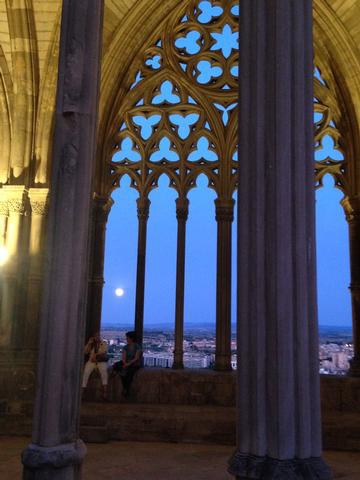 La Seu Vella i el poeta Màrius Torres, il·luminats per la lluna plena de Lleida
