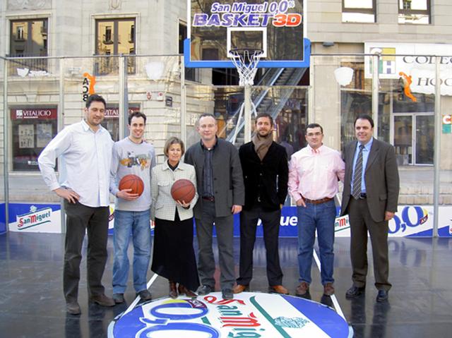 El tinent d'alcalde Xavier Sàez, la regidora d'Esports Montse Parra i jugadors del Plus Pujol Lleida han presentat aquesta tarda el "San Miguel 0,0% Basquet 3D" que estarà instal·lat a la plaça Sant Joan de l'11 al 13 de març. El bàsquet 3D, també anomenat "bàsquet de vidre", permet jugar al bàsquet en ple carrer en una pista de metacrilat, sense línies de fons i amb regles específiques adaptades a aquest espai. Les inscripcions per al campionat es poden fer a la web de San Miguel: www.sanmiguel.es.