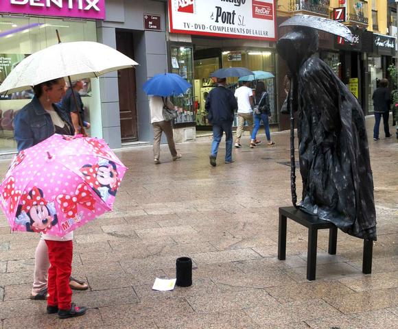 L’Eix Comercial de Lleida s’ha omplert avui d'estàtues vivents en l’acció de dinamització comercial impulsada per la Federació d’Associacions de Comerciants de l’Eix. Setze figures humanes s’han repartit pels carrers del Carme, Magdalena, Portaferrissa, plaça Sant Joan, carrer Major, avinguda Blondel, Sant Antoni i Alcalde Costa amb la intenció de promocionar l’eix comercial més gran del país.