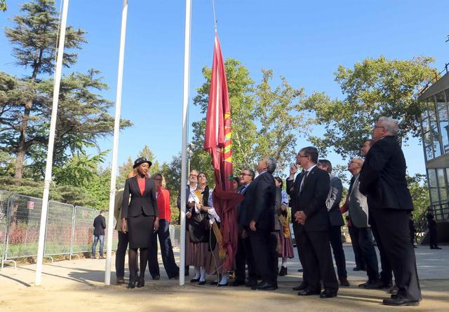 El paer en cap, Àngel Ros, ha presidit l’acte de la hissada de la bandera i l’ofrena floral a l’estàtua de l’alcalde Fuster