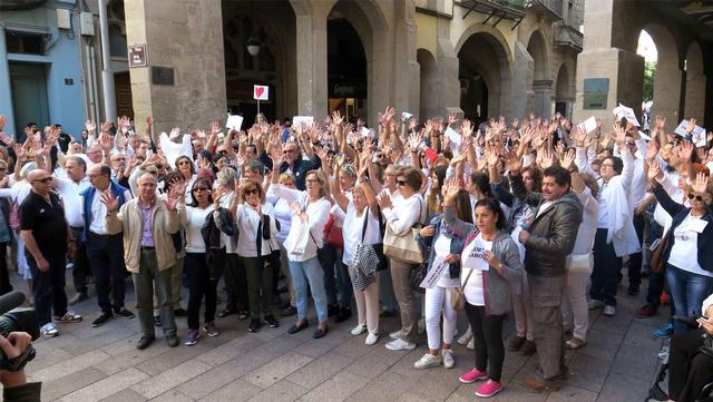 La Plaça Paeria, igual que les places de molts ajuntaments, acull la concentració a favor del diàleg i la concòrdia