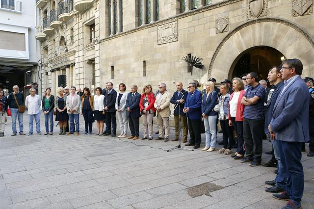La Corporació Municipal i els representants d’institucions, cossos de seguretat i entitats de la ciutat han estat presents en el minut de silenci a la plaça de la Paeria.