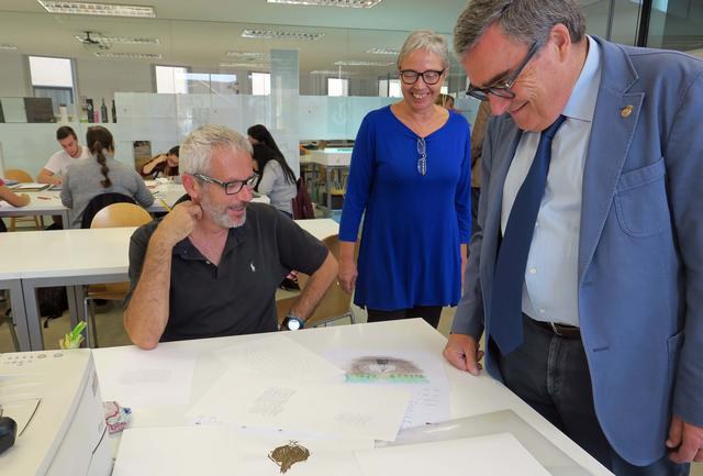 L’alcalde de Lleida, Àngel Ros, ha visitat l’Escola d’Art Municipal Leandre Cristòfol, que ha iniciat el curs aquest octubre amb uns 130 alumnes matriculats en Cicles Formatius de Grau Superior, dins la família d’arts plàstiques i disseny, i amb uns 240 alumnes, als tallers monogràfics