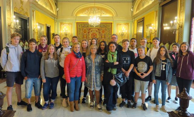 La tinent d’alcalde i regidora de l’àrea d’Educació, Montse Parra, ha rebut aquest matí a la Paeria un grup d’alumnes alemanys, provinents de Bremen, que estan fent un intercanvi lingüístic amb el col·legi Maristes Montserrat de Lleida. Parra els ha saludat i agraït la seva a l’Ajuntament, on han pogut conèixer alguns detalls arquitectònics i patrimonials del Palau i de la història de la ciutat. Parra ha destacat els vincles que s’estableixen a través dels intercanvis lingüístics i culturals als centres escolars, mostrant com les relacions a Europa van més enllà de l’economia. La tinent d’alcalde ha afegit que molts centres de Lleida fan convenis d’intercanvi, fet que és molt enriquidor.