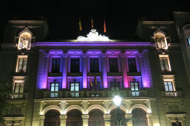 La façana de la Paeria s’ha il·luminat amb llum de color rosa aquest vespre amb motiu del Dia Mundial Contra el Càncer de Mama