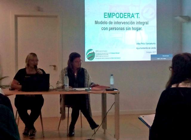 L’Ajuntament de Lleida ha estat present al Congrés Estatal i Iberoamericà del Treball Social de Mèrida amb la presentació del projecte “Empodera’t”, de la Regidoria de Polítiques per als Drets de les Persones. Es tracta d’un model d’intervenció integral amb persones sense llar, que ja ha desenvolupat diverses accions a la ciutat i que s’ha concretat amb accions com un taller de construcció de mobiliari per a Escoles Bressol Municipal –està en marxa i s’acaba al novembre-, un taller de construcció de mobiliari destinat al projecte Housing First o la Saleta de La Panera, espai expositiu on es poden visitar exposicions dels resultats dels projectes dirigits per diferents artistes locals i catalans.