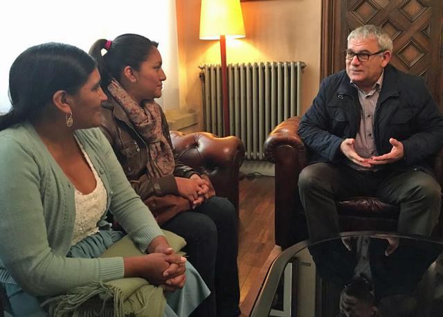 El tinent d’alcalde Joan Gómez ha rebut a la Paeria les representants bolivianes, que duran dos mesos s’assessoraran i intercanviaran experiències a les àrees municipals de Secretaria General i Medi Ambient, en el marc del projecte de cooperació entre l’Ajuntament de Lleida, el Banc de Recursos i el CEDESCO