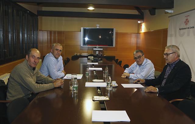 L’alcalde de Lleida, Àngel Ros, acompanyat del tinent d’alcalde Joan Gómez, s’ha reunit aquesta tarda a la Paeria amb els presidents de les Entitats Municipals Descentralitzades de Sucs i Raimat, Guillem Boneu i Eva Horcajada, respectivament. Entre altres qüestions, s’han posat sobre la taula punts que afecten ambdues entitats, com són les necessitats pressupostàries i l’actualització dels convenis de col·laboració que la Paeria té amb les EMD.