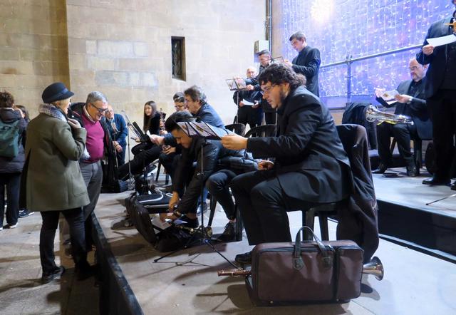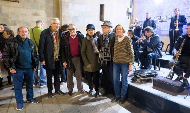 El paer en cap i la regidora de Cultura, Montse Parra, saluden els sardanistes i els músics de la Cobla Municipal
