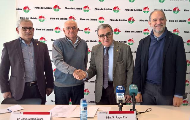 Fira de Lleida i el Banc dels Aliments de Lleida han signat avui un conveni de col·laboració que permetrà cedir el Pavelló 3 de la Institució firal per tal d’emmagatzemar i distribuir el material obtingut en la campanya del Gran Recapte d’Aliments d’enguany. El conveni, signat per l’alcalde de Lleida i president del Patronat de la Fundació Fira de Lleida, Àngel Ros, i el president del Banc dels Aliments de Lleida, Joan Ramon Saura, estableix que Fira de Lleida cedirà aquest pavelló (amb una superfície total de 3.500 m2) entre el 29 de novembre i el 13 de desembre i que alhora contribuirà a la difusió de la campanya solidària.