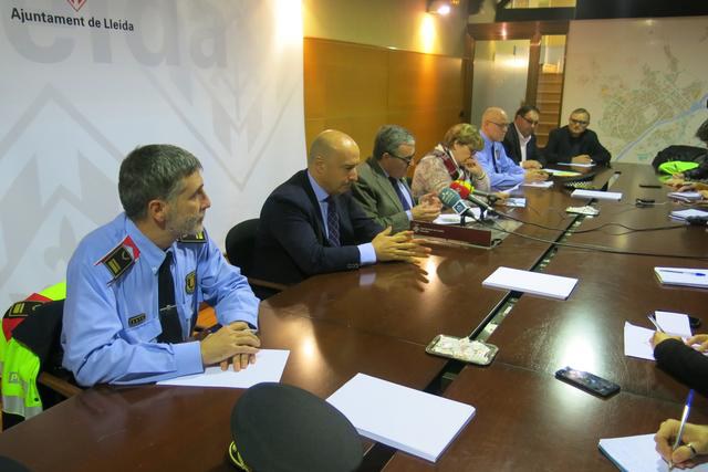 L’alcalde de Lleida, Àngel Ros, juntament amb el tinent d’alcalde i regidor de promoció econòmica, Rafael Peris, i la regidora de Seguretat Ciutadana, Sara Mestres, ha presidit avui la presentació de la Campanya de Trànsit i Seguretat Ciutadana que es realitza cada any amb motiu de les Festes de Nadal, juntament amb els representants dels cossos de Guàrdia Urbana i Mossos d'Esquadra i els representants de PIMEC.