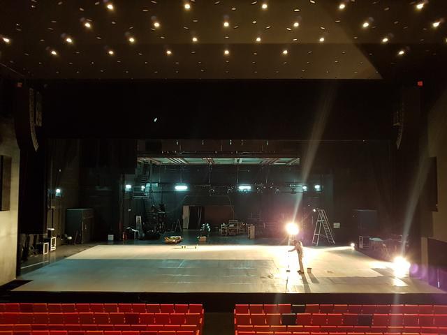 A més, l'escenari també compta amb la darrera tecnologia, amb un fossat per a l'orquestra que és retràctil. La caixa escènica fa 26 m d'ample per 21 de fons i una boca de 20,5 m d'ample per 10 d'alçada.