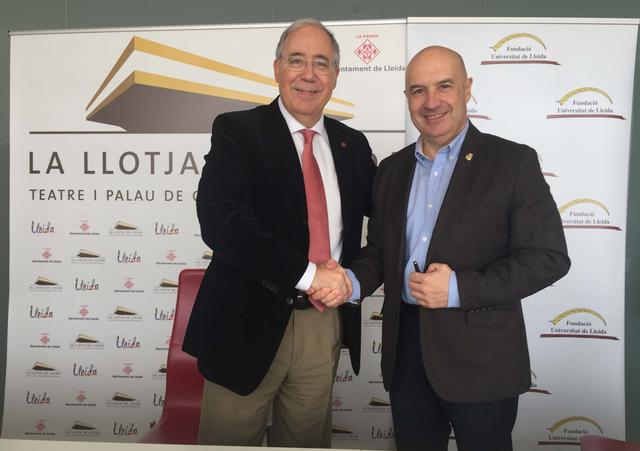 La Llotja acollirà durant els propers dos anys diferents esdeveniments relacionats amb la promoció, organització i realització de congressos que impulsi la Fundació de la Universitat de Lleida. Així ho estableix el conveni de col·laboració que han signat aquest dijous el tinent d’alcalde i president del Consell d’Administració del Centre de Negocis i Convencions, Rafael Peris, i el rector de la UdL, Roberto Fernández.