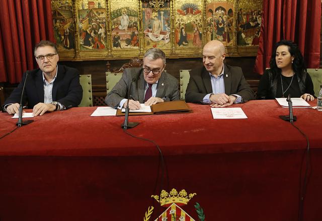 A la signatura del Pacte han assistit també els tinents d'alcalde Joan Gómez i Fèlix Larrosa, així com els regidors Paco Cerdà, Josep Maria Baiget i Dolors Lopez.