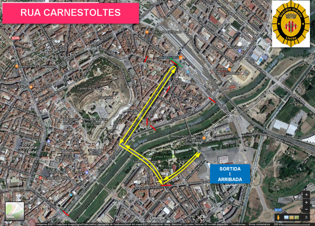 -Sobre les 15 h es tallaran els vials d’accés als Camps Elisis i únicament es permetrà accedir al seu interior les carrosses i les comparses que participaran a la Rua. Els punts de tall seran les cruïlles de Camí de Granyena amb l’avinguda de Tarradelles, avinguda d’Alacant amb Eduardo Velasco i Santa Cecília amb l’avinguda de les Garrigues.