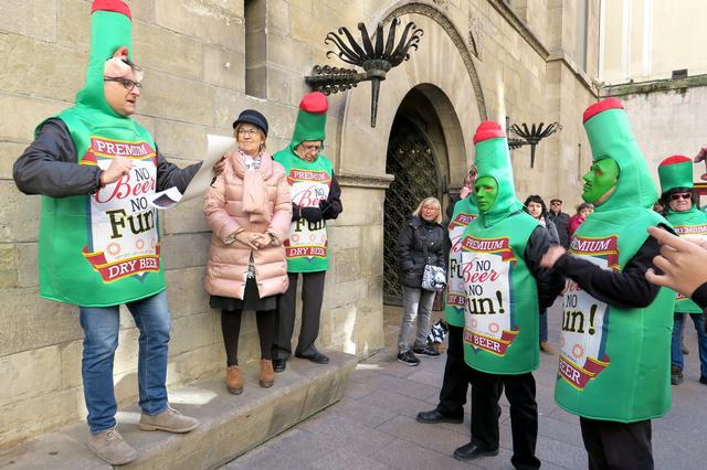 La tinent d’alcalde Montse Parra ha rebut els membres de la germandat a la plaça de la Paeria, on han presentant les credencials “birreres Carnavalesques” a les autoritats, enmig de música i balls