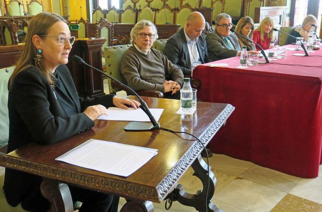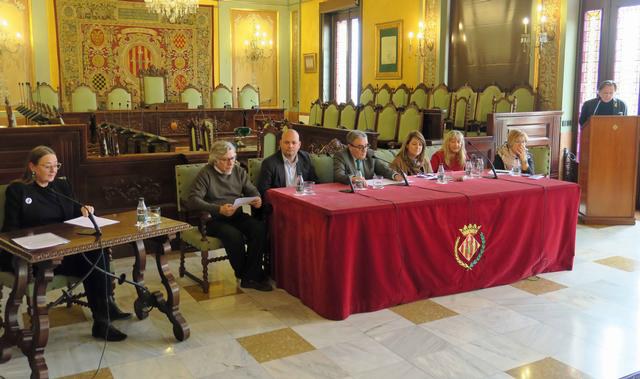 Els regidors Francesc Gabarrell, José Luis Osorio i Dolors López han assistit a l’acte que s’ha fet a la Paeria, que ha estat conduit pel comissari del programa d’actes, Carles M. Sanuy.