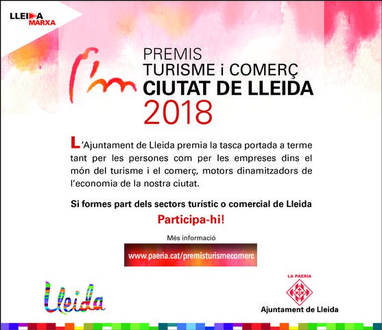 L’Ajuntament de Lleida, a través de la Regidoria de Promoció de la Ciutat, convoca la 3a edició dels Premis de Turisme i de Comerç “Ciutat de Lleida” amb l’objectiu de reconèixer la qualitat i la professionalitat de les persones i empreses del sector turístic i comercial de Lleida, dos dels pilars econòmics fonamentals de la ciutat. El tinent d’alcalde i regidor de Promoció de la Ciutat, Rafael Peris, ha destacat que “aquesta iniciativa pretén posar de manifest que el turisme i el comerç de Lleida són dos eixos vertebradors de la ciutat, alhora que representen un dels motors d’ocupació”.