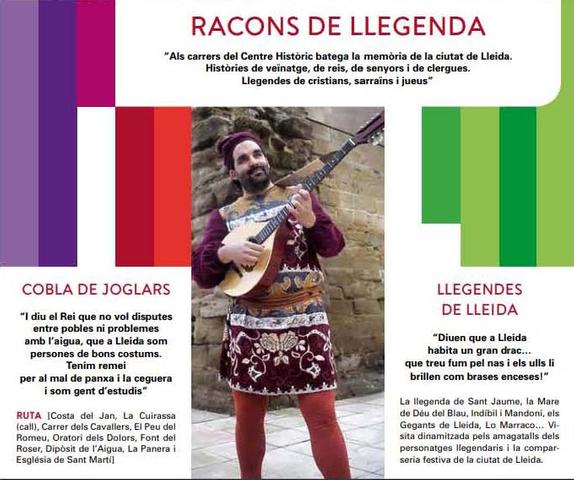 La ruta “La Cobla dels Joglars” recorre la Costa del Jan, la Cuirassa (call jueu), carrer Cavallers, el Peu del Romeu, l’Oratori dels Dolors, la Font del Roser, el Dipòsit de l’Aigua, la Panera i l’església de Sant Martí. Els participants en aquesta ruta podran conèixer molts detalls d’aquests indrets dels carrers del Centre Històric, on batega la memòria de la ciutat de Lleida.