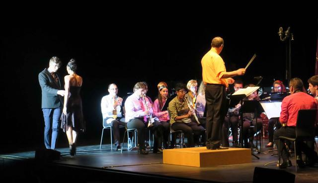 La Banda Simfònica Unió Musical de Lleida ha ofert aquest vespre al Teatre de la Llotja un desconcertant concert amb música, teatre i dansa, on han interactuat músics, actors i públic, sota la direcció d’Esteve Espinosa i amb la col·laboració especial dels actors Joana Cebolla i David Vergé i dels ballarins Irene Herrera i Lluís Sauch.