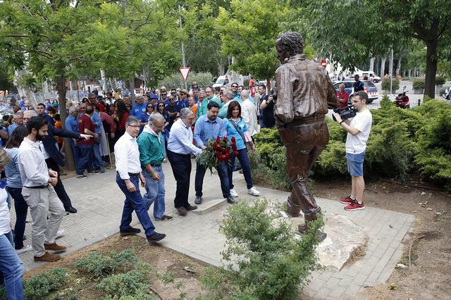 L’alcalde Àngel Ros i diversos membres de la corporació municipal participen en l’ofrena floral davant l’estàtua de Manolo Calpe