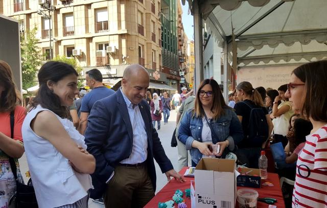 El tinent d’alcalde i regidor de Promoció de la Ciutat, Rafel Peris, i la regidora de l'àrea d'Educació, Rosa Maria Salmeron, acompanyats del conseller delegat de GlobaLleida, Oriol Oró, ha visitat aquest divendres el Mercadet Escola d’Emprenedors que se celebra davant de la Catedral i en el qual hi participen 7 centres educatius de Lleida.